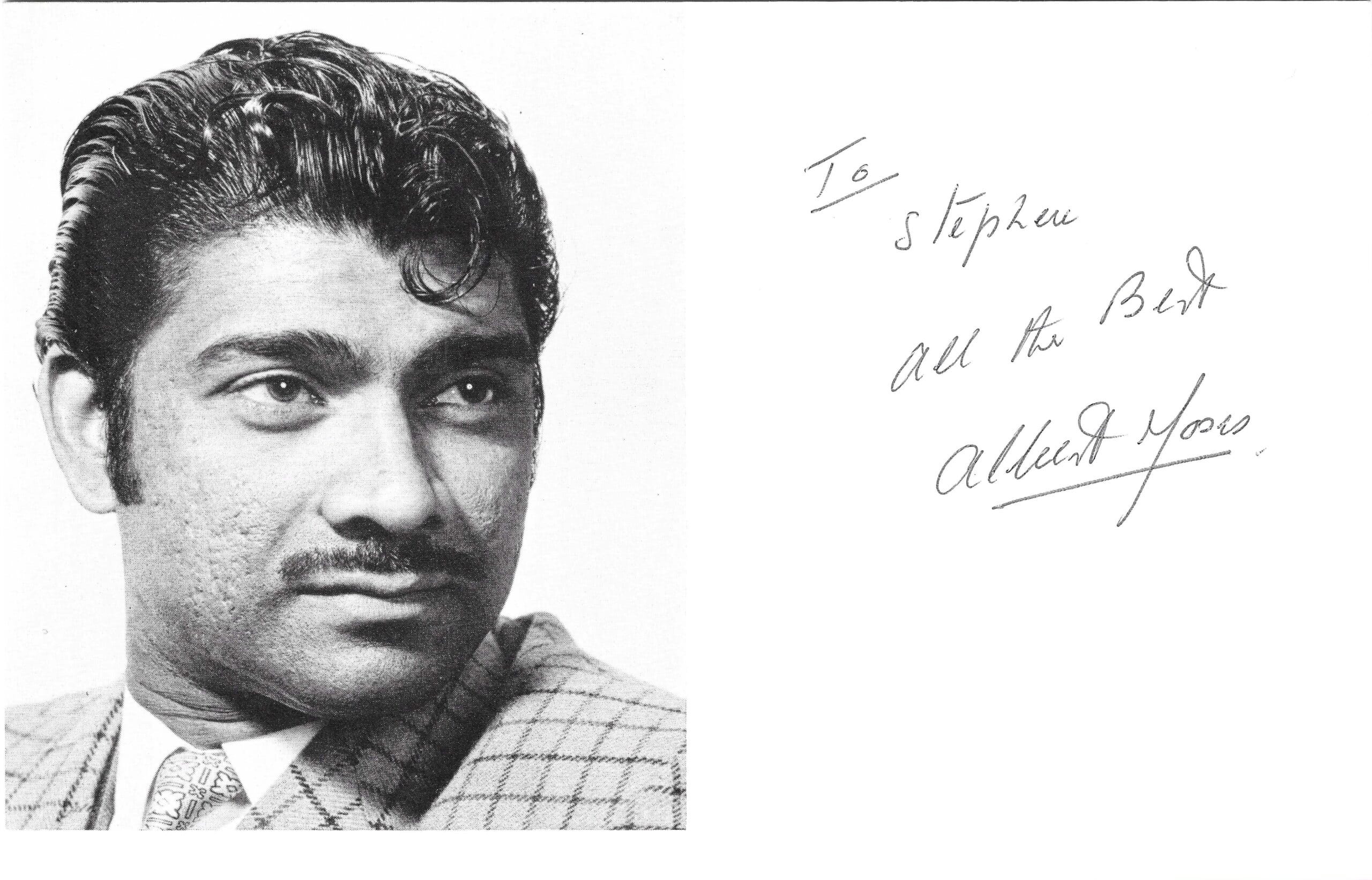 A 5×7 inch photocard signed by actor Albert Moses.