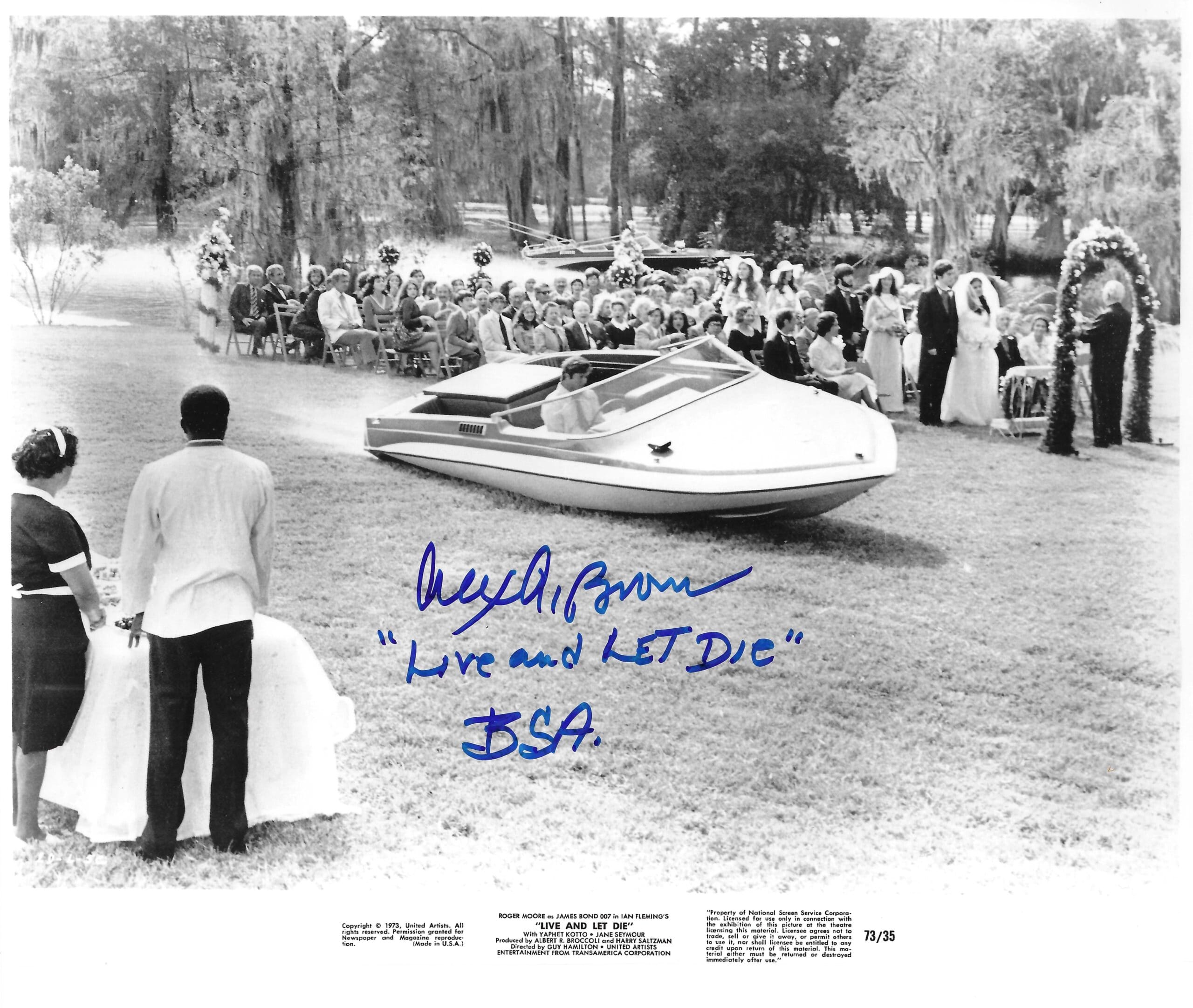 PLEASE NOTE: Your purchased photo may be slightly different to the scan displayed. This is because we have five examples of this photo signed by Alex. All photos have been signed “Alex Brown, Live and Let Die, BSA”.