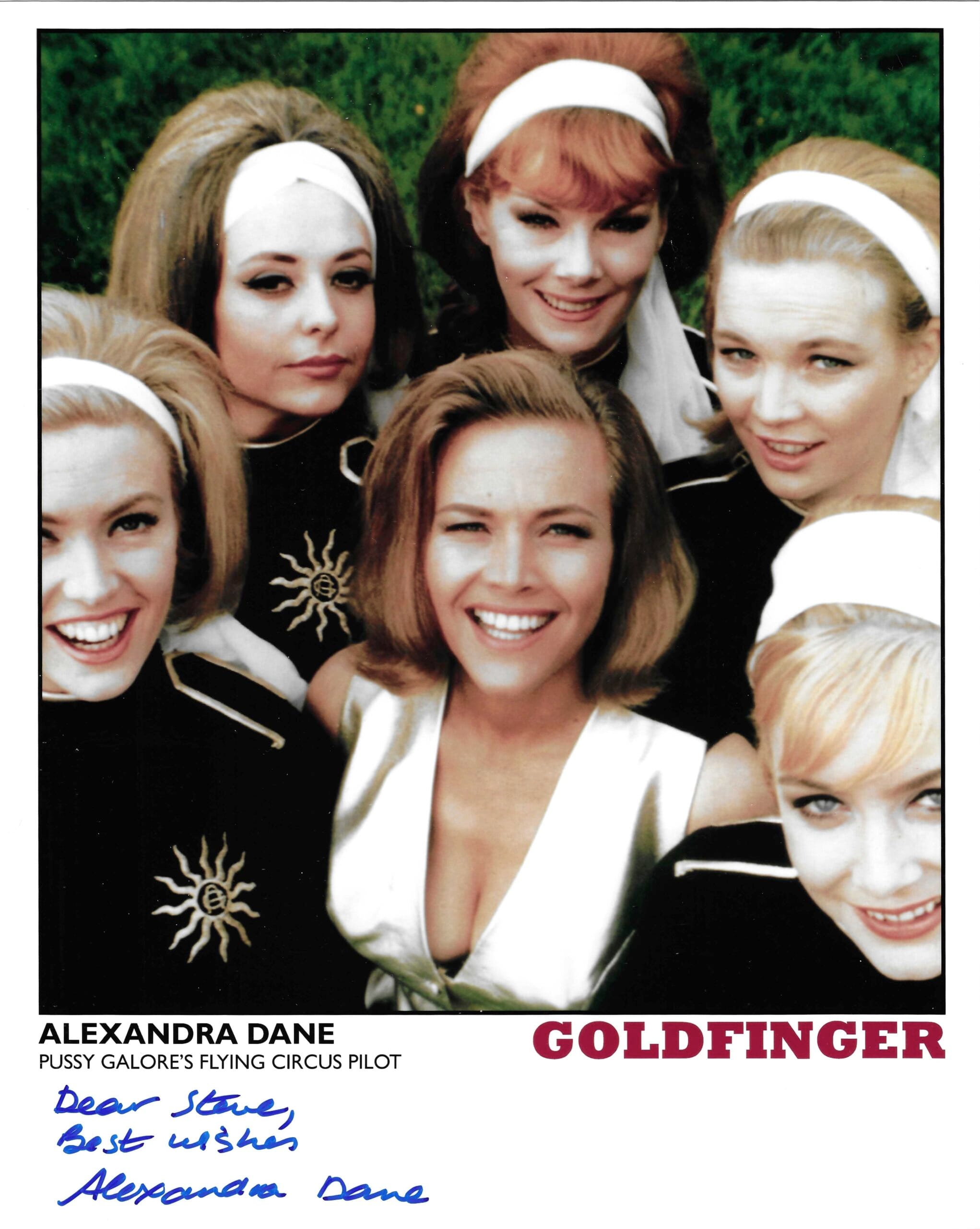 She portrayed one of Pussy Galore’s flying circus pilots and was hired for the publicity shoot.