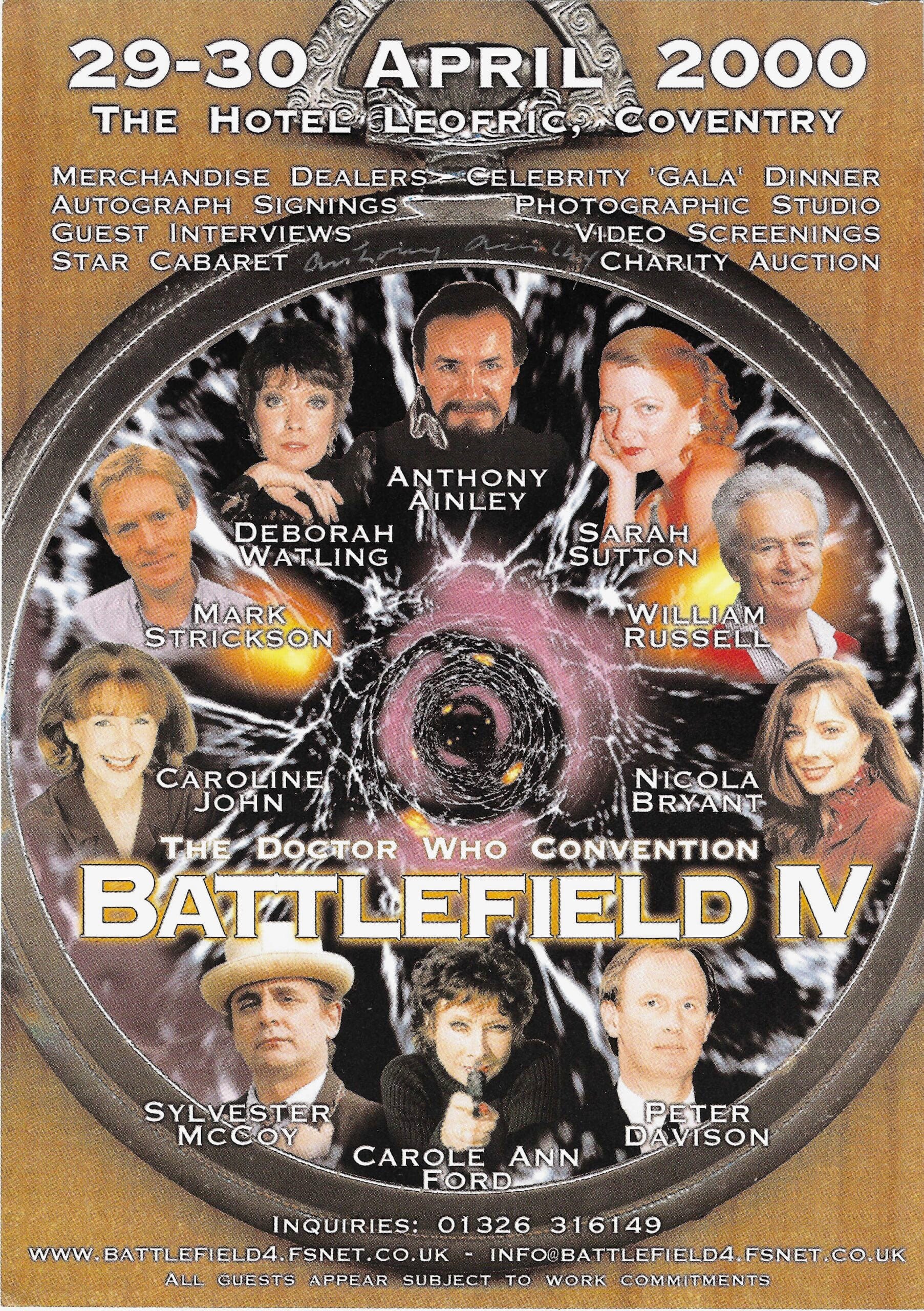 An 8×6 inch photocard flyer hand signed by actor Anthony Ainley, in silver pen (just above his head!).