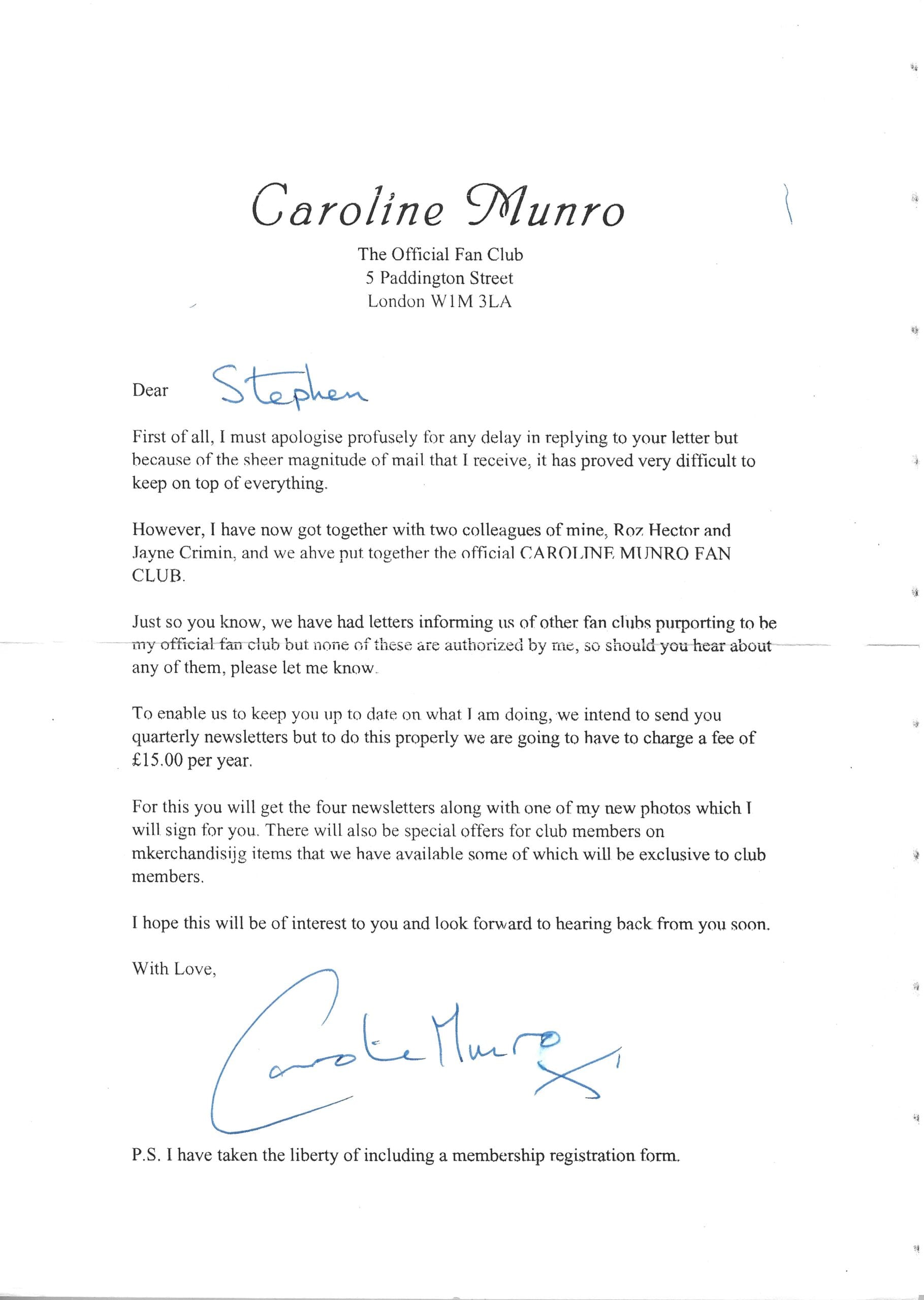 A vintage 8×10 inch publicity still hand signed by Caroline Munro.
