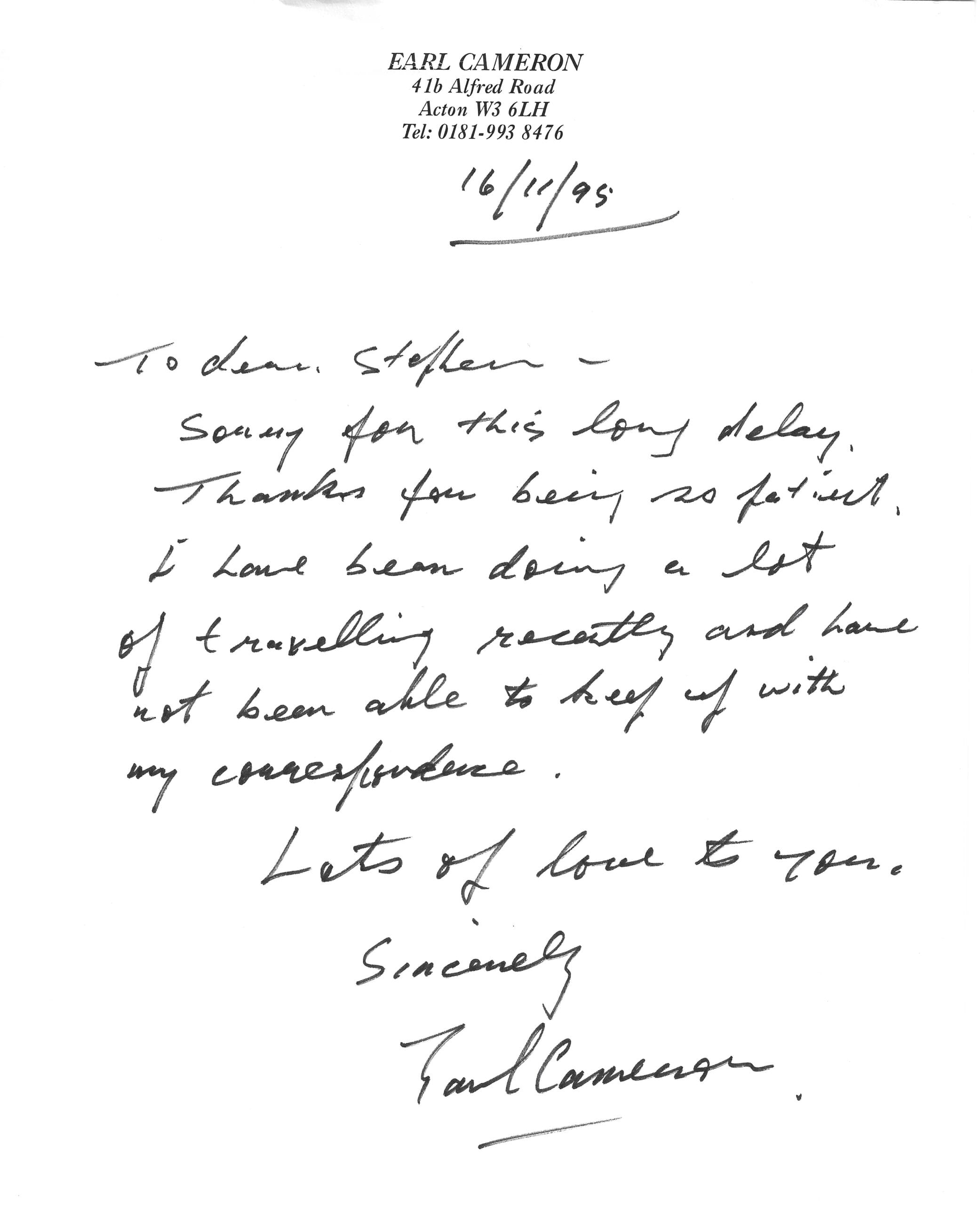 An 8×10 inch publicity photo hand signed by actor Earl Cameron.