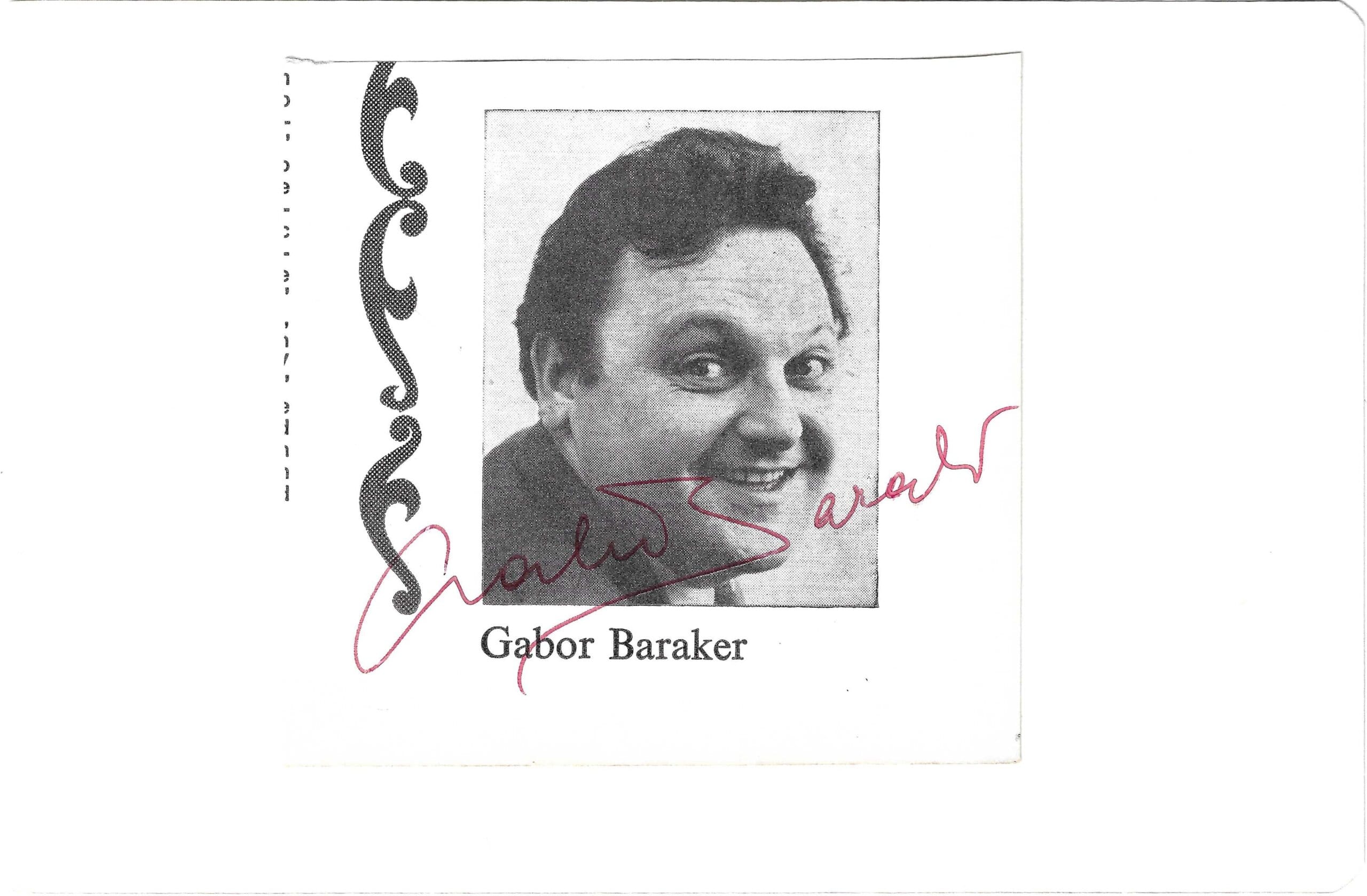 A theatre programme picture cut and affixed to an album page, hand signed by Hungarian actor Gábor Baraker.