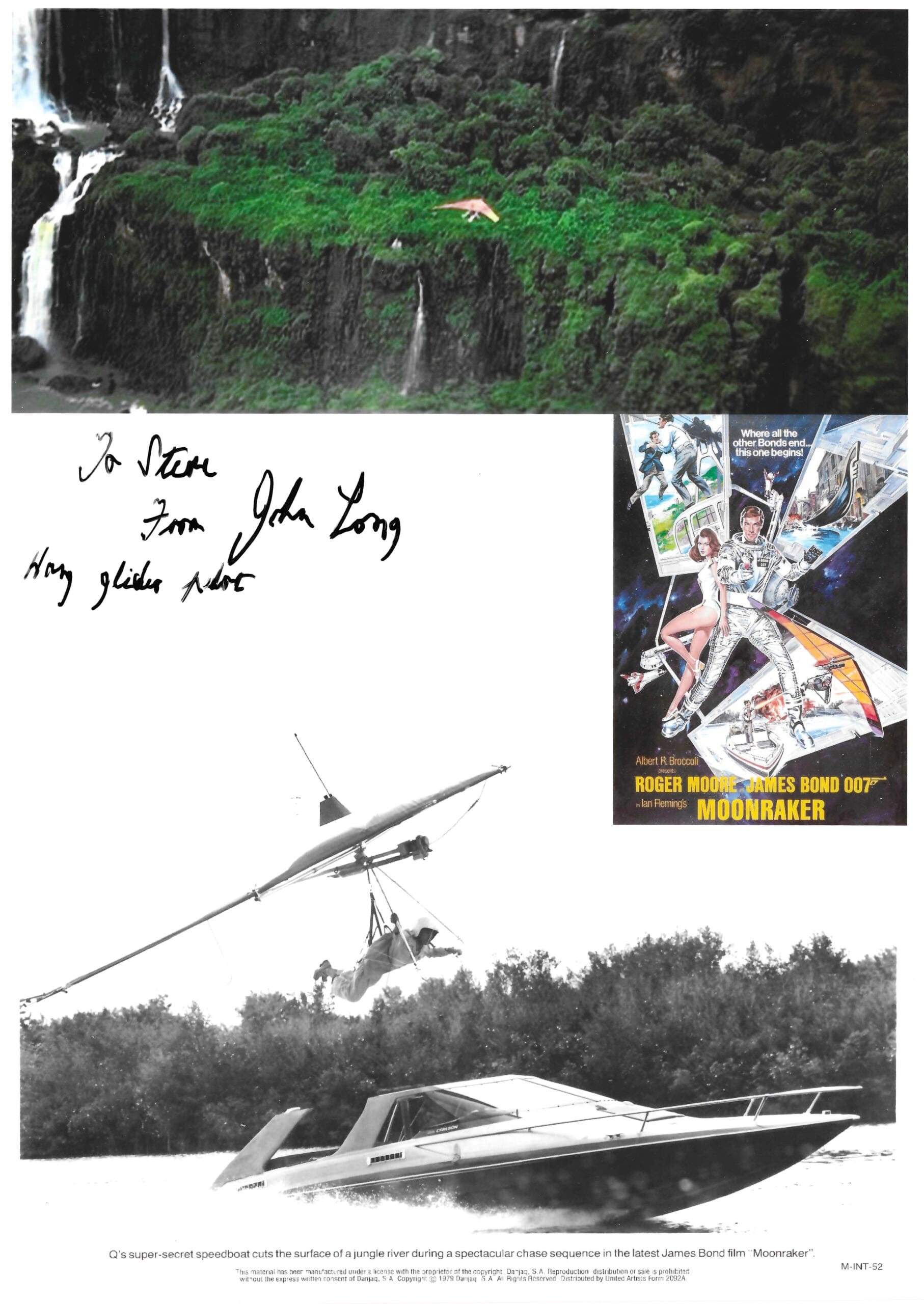 He was one of two pilots to work on the hang gliding sequence in “Moonraker”. Specifically, he was the pilot seen flying over the Iguazu Falls and over the rainforest on the long distance shots.