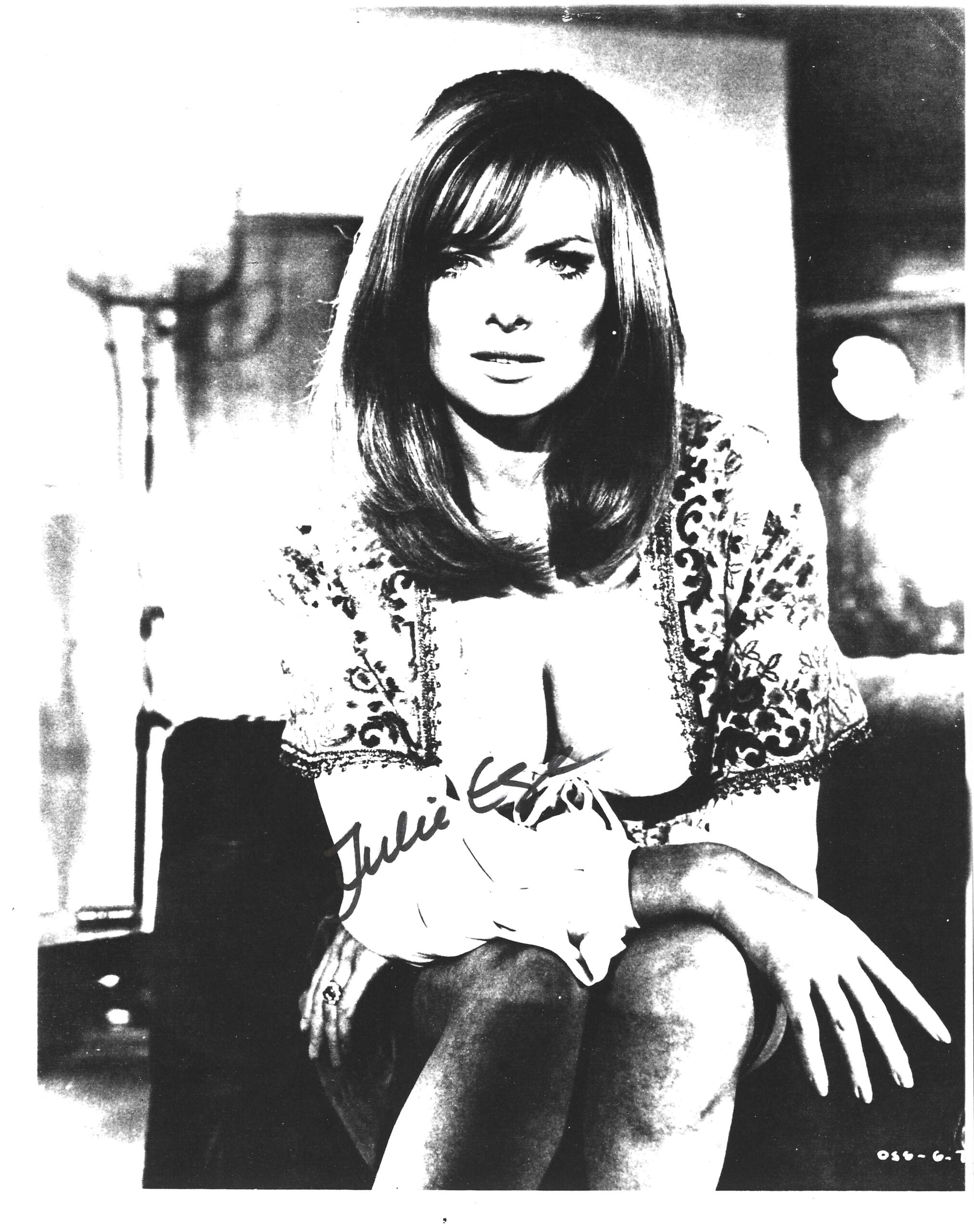 An 8×10 inch paper photocopy of an original production still, hand signed by Julie Ege.