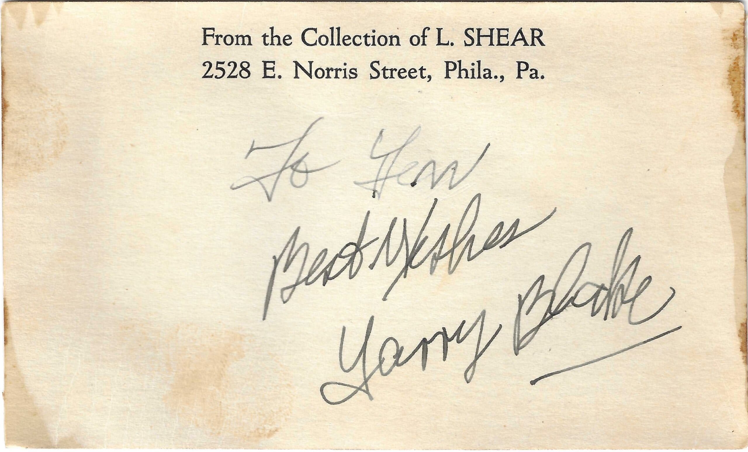 This vintage card displays the name of the collector and his address in Philadelphia.