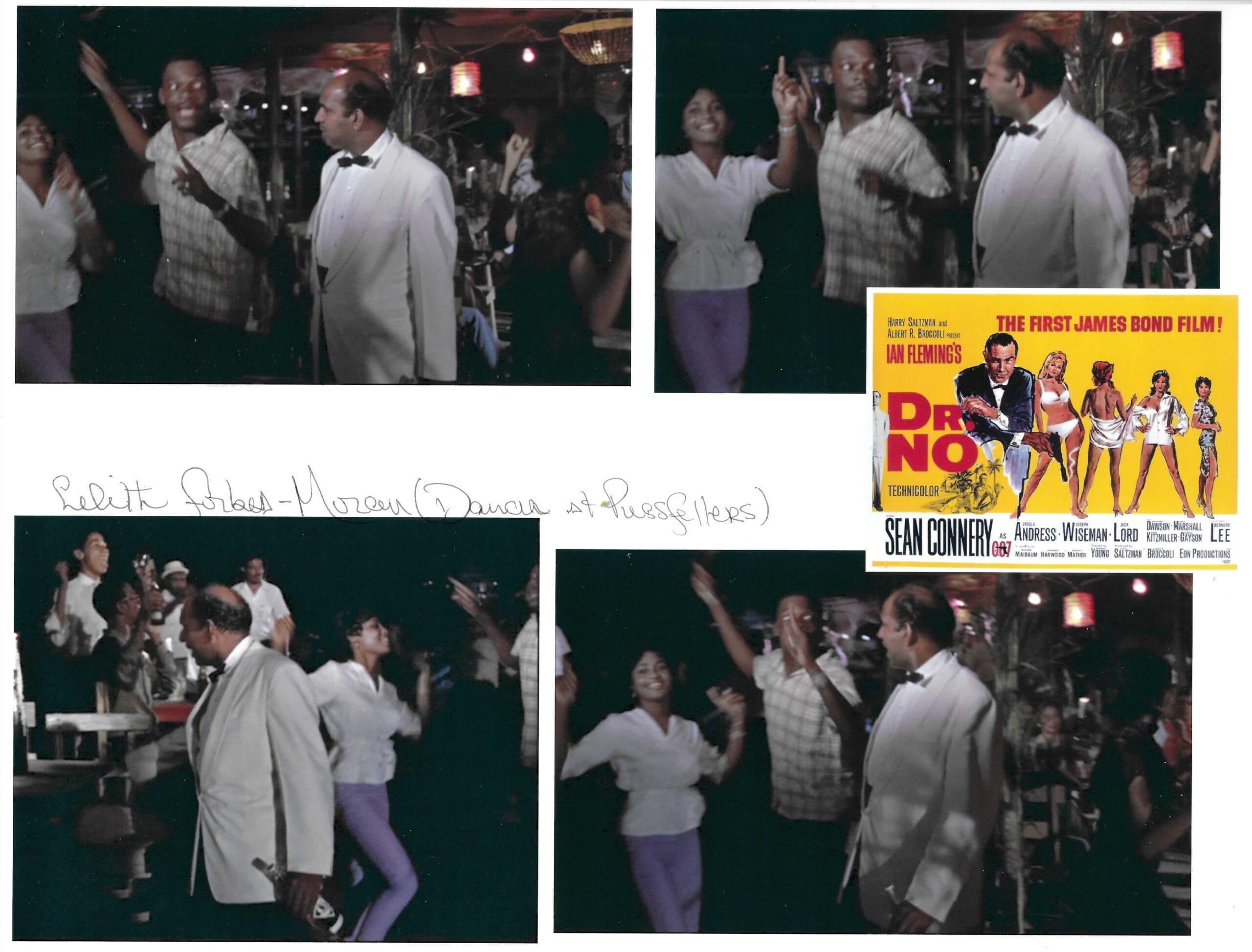 An 8×12 inch photo showing the scenes as Puss-Feller’s nightclub in “Dr. No”, hand signed by Lelith Forbes who portrayed one of the main dancers scene during the sequence.