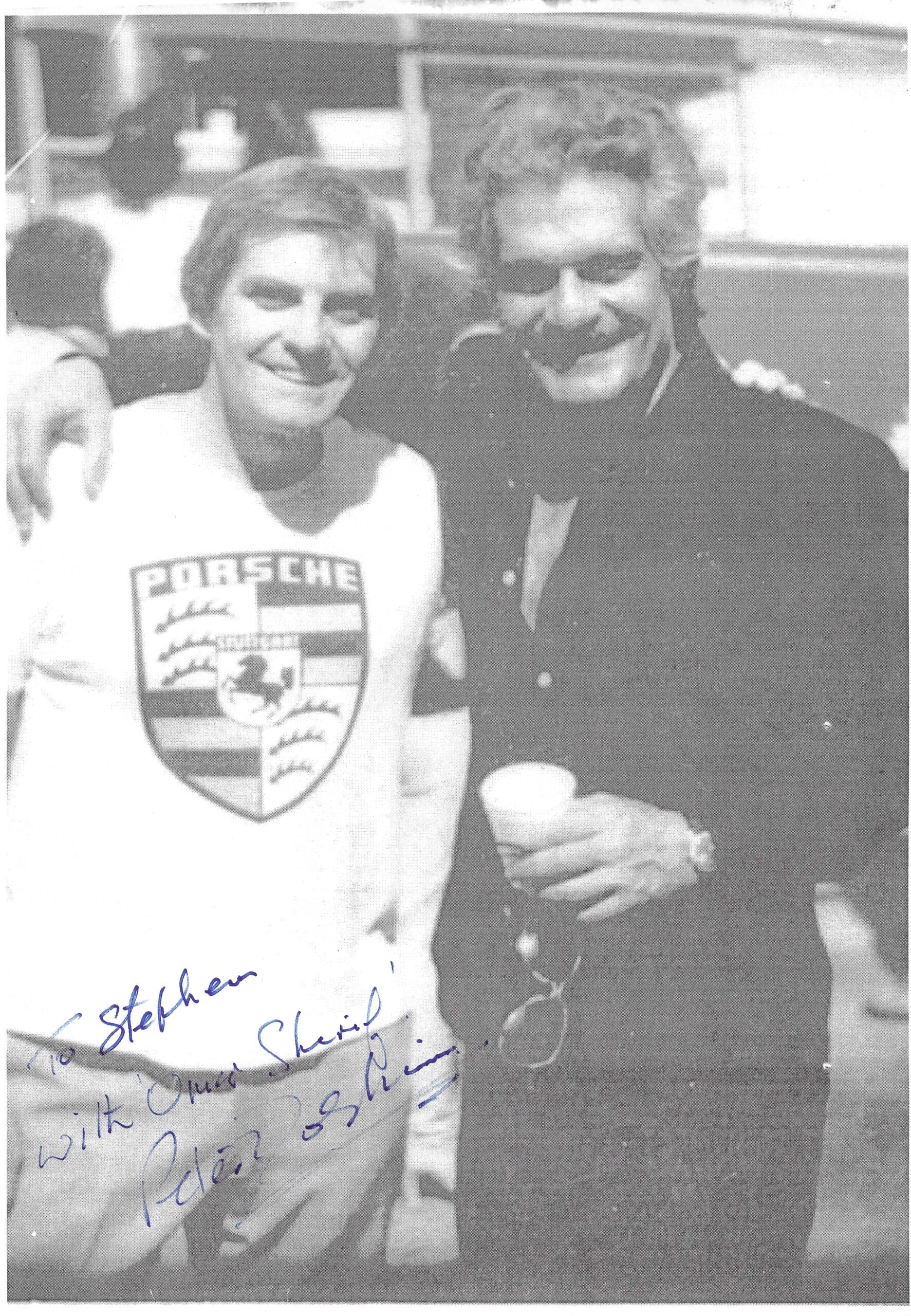 An A4 paper photocopy picture signed by model and actor Peter Dolphin. The still came directly from Peter’s personal archive and shows him with Omar Sharif.
