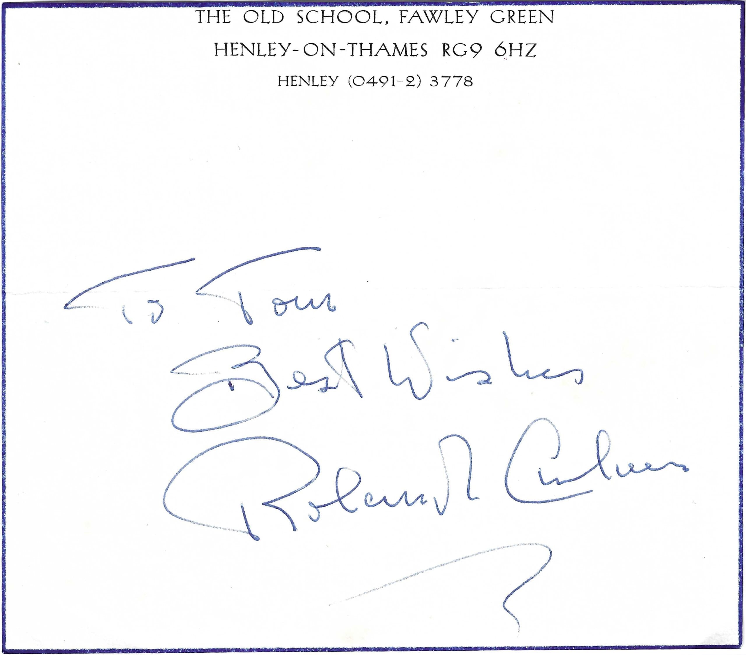 A very neat and clean example of his autograph, complete with his personal address.