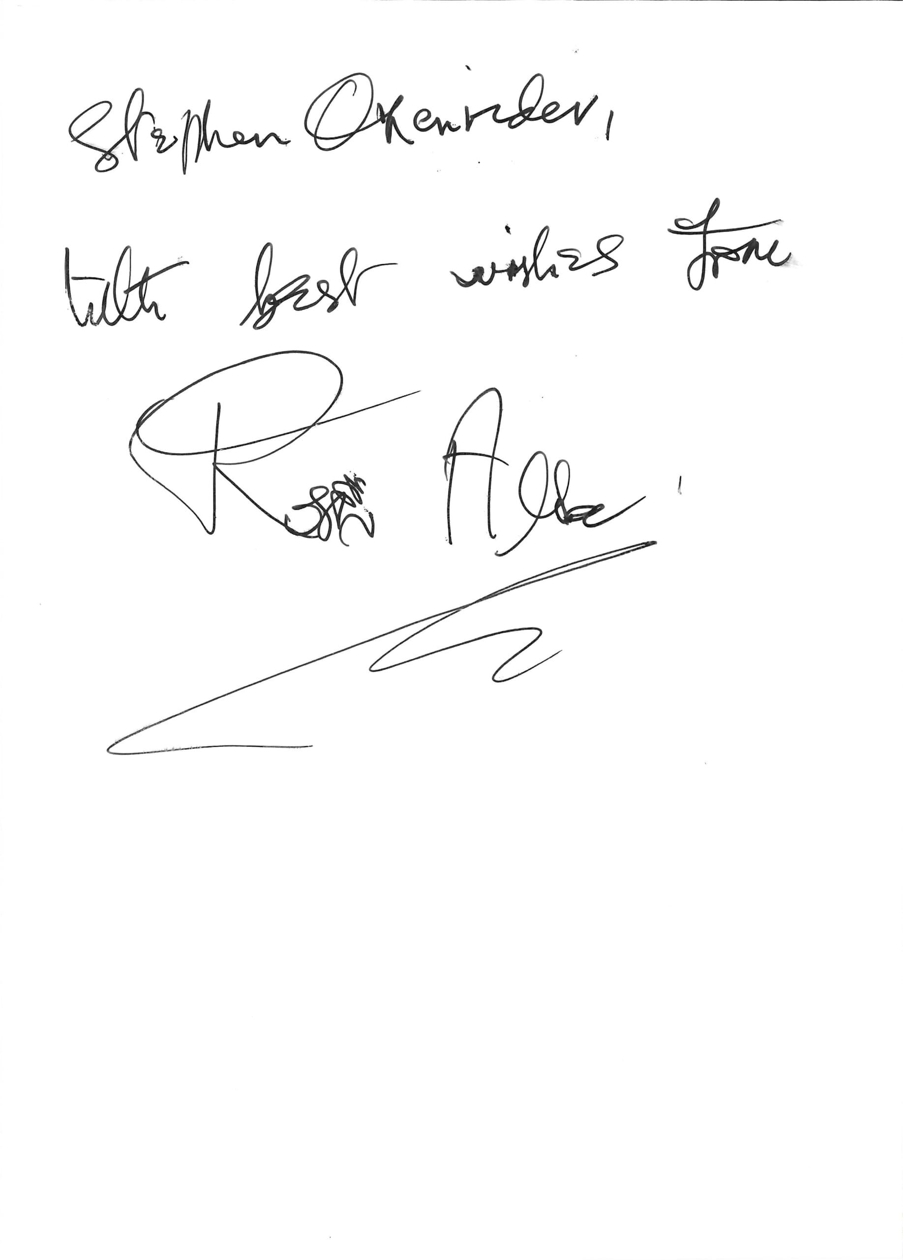 The Bond Archives & Bond Autograph Archives are in no way attached or officially associated with EON Productions, Danjaq LLC, United Artists Corporation, Columbia Pictures Industries, Sony, Universal Pictures, Ian Fleming, Glidrose Publications Limited or Metro-Goldwyn-Mayer Studios Inc. All film titles, character names, photographs, screenshots and other information which may be copyright protected are used as a reference only. All autographs, props and private interviews displayed within the Bond Archives & Bond Autograph Archives are owned and exclusively displayed by the Bond Archives, unless stated otherwise. No material found within this website may be removed, copied or reproduced in any form and by any means, without express written permission by the Bond Archives & Bond Autograph Archives.
