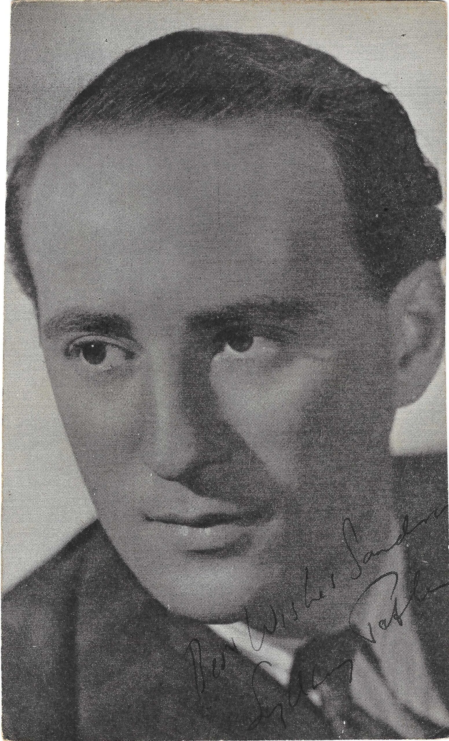 A 3×5 inch vintage postcard, hand signed by actor Sydney Tafler.
