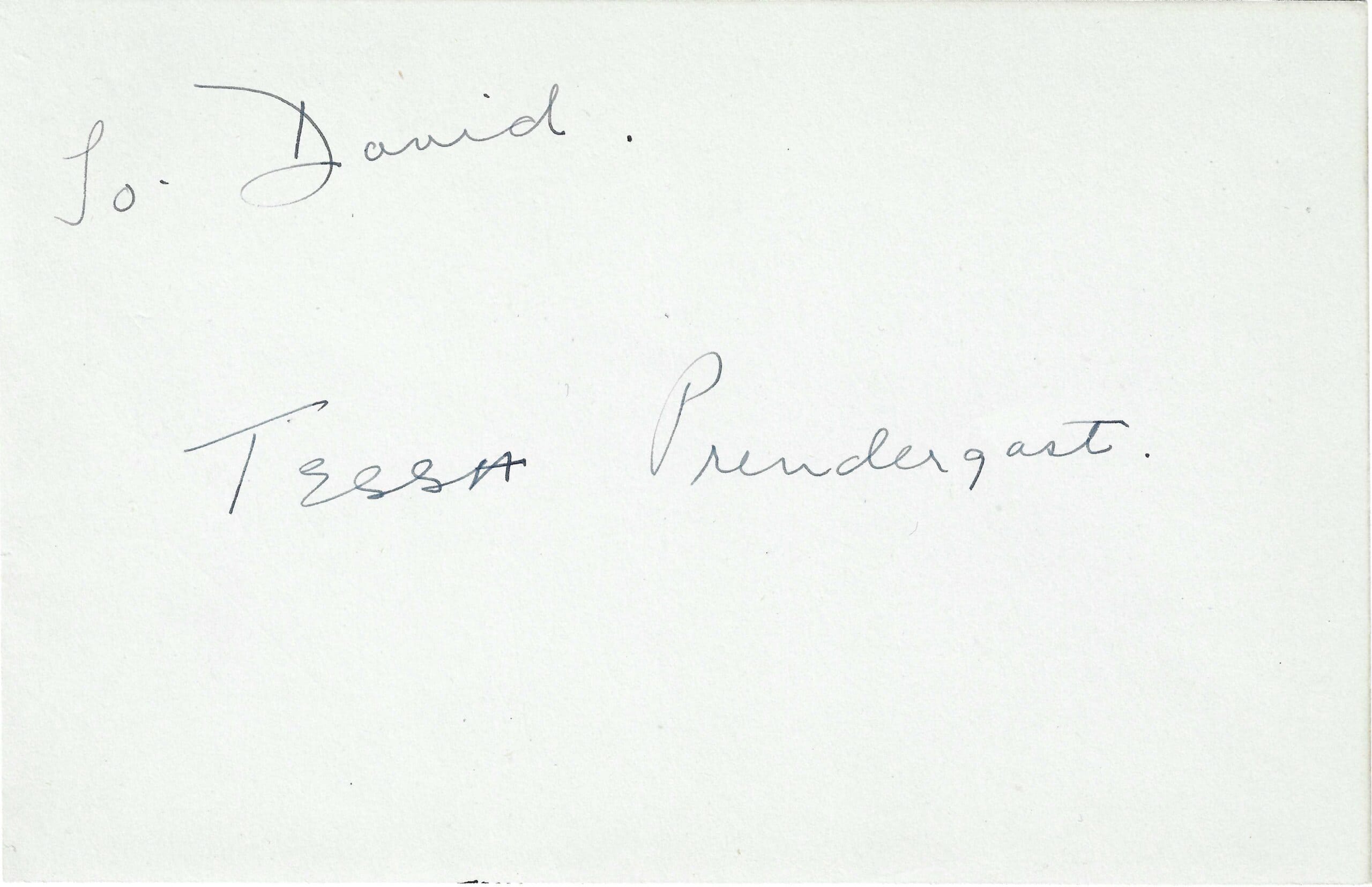 A large vintage album page (size 4×6 inch) hand signed by Tessa Prendergast, who designed Ursula Andress’ iconic white bikini for “Dr. No”.